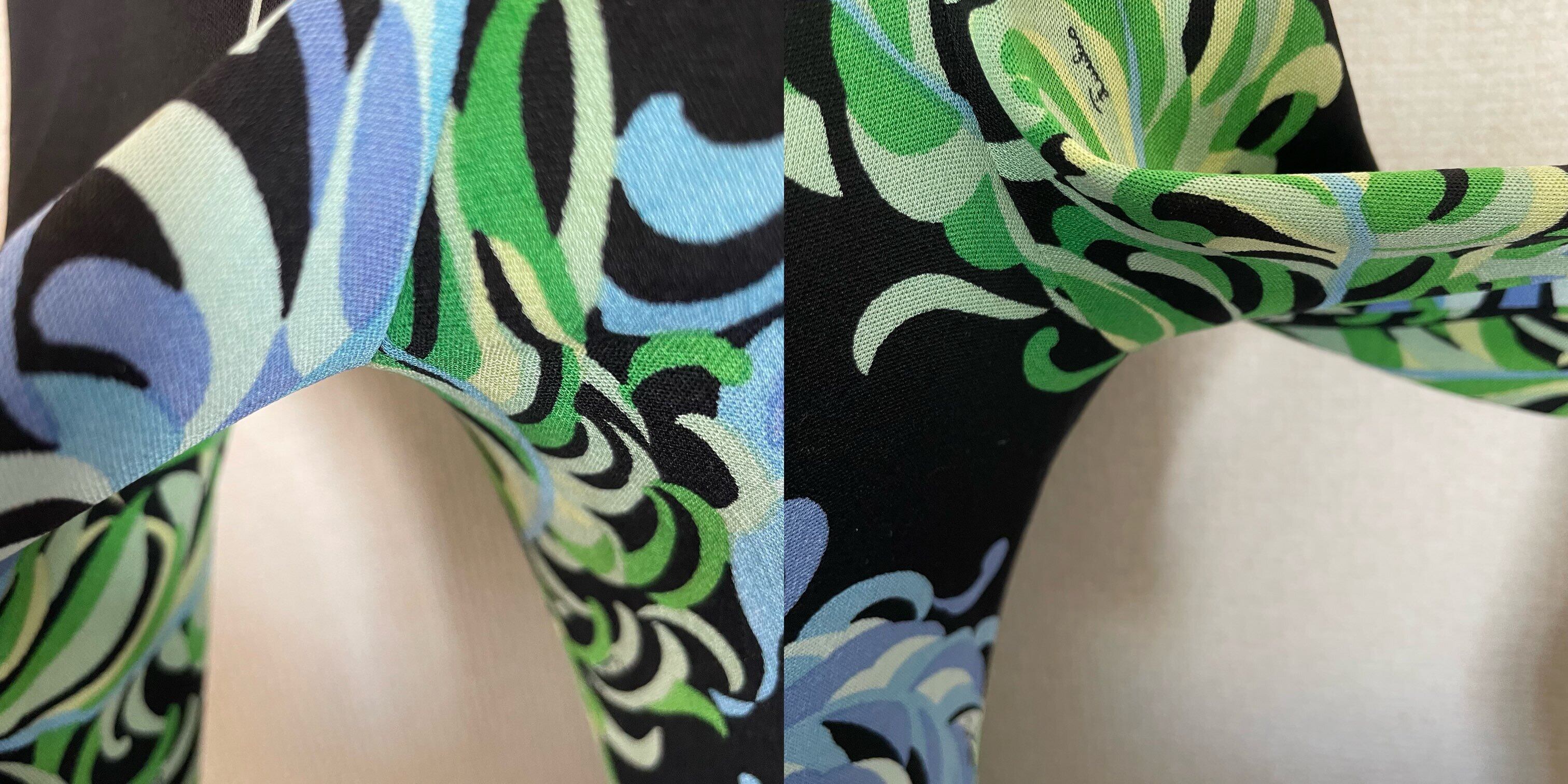 また、プッチの昔のタグは素材によって違うのですが、こちらはシルクジャージのため緑のロゴが採用されてます。